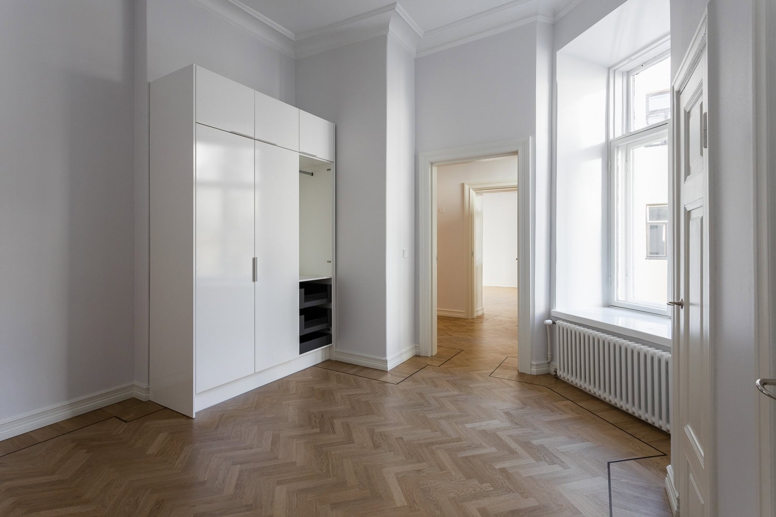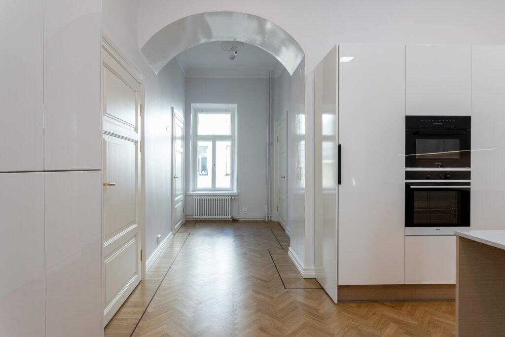 Riddarborg 1 pienempi sisarus on kooltaan 155 neliömetriä ja se on kokenut tilojen täydellisen saneerauksen, aivan kuten suurempi asunto.